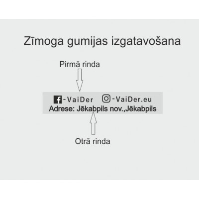 REĢISTRĒJIES un pievieno sev vēlamo tekstu norādītajos logos, apraksti vēlmes un obligāti uzspied pogu Saglabāt Labojumus, tad pievieno grozam un noformē pabeidz sūtījumu! Mēs izveidosim Jūsu vēlamo zīmoga paraugu un nosūtīsim Jums.