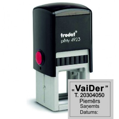 Trodat Printy 4923 ir populārs un praktisks pašiespiešanas zīmogs, kas piemērots ikdienas lietošanai birojā vai mājās. Tā nospieduma izmērs ir 30 x 30 mm, kas ir pietiekami liels, lai ietilptu līdz pat 5 teksta rindām. Šis zīmogs ir viegli lietojams un nodrošina tīru un precīzu nospiedumu katru reizi. Trodat Printy 4923 ir izgatavots no augstas kvalitātes materiāliem, kas nodrošina tā ilgmūžību. Zīmogs ir pieejams dažādās krāsās, tāpēc varat izvēlēties sev piemērotāko variantu.