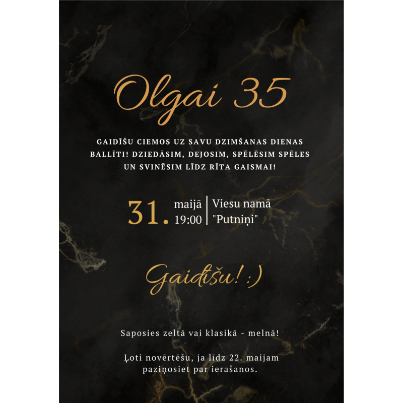 Ielūgums uz dzimšanas/vārda dienu vai jebkuriem citiem svētkiem!