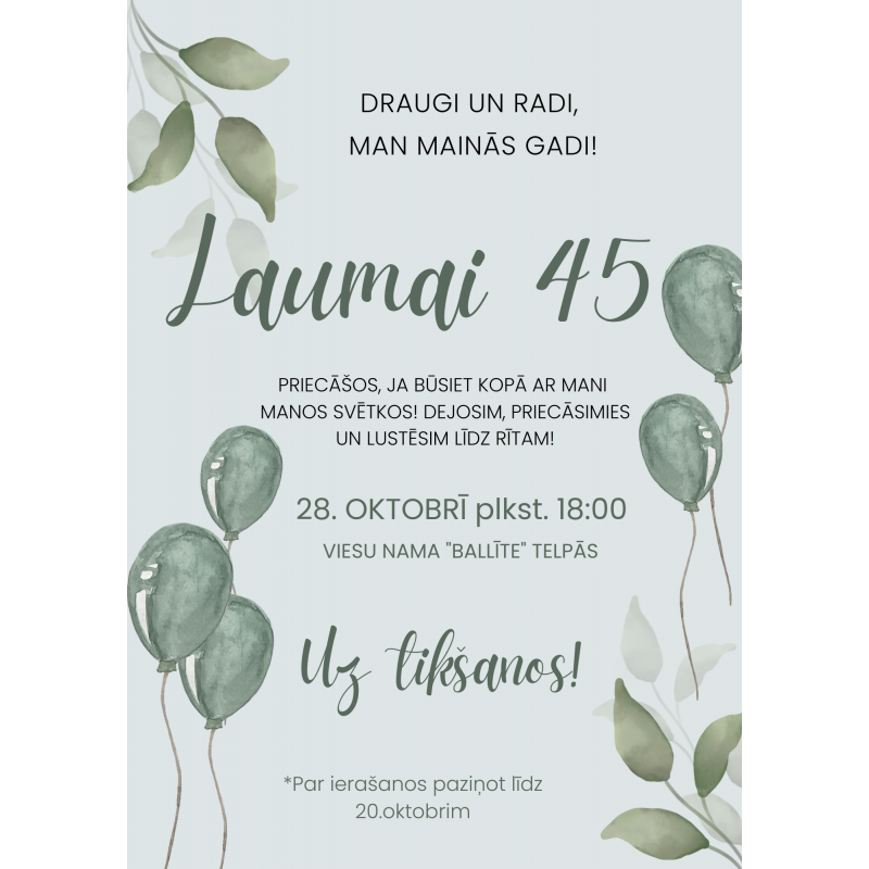 Ielūgums uz dzimšanas/vārda dienu vai jebkuriem citiem svētkiem!