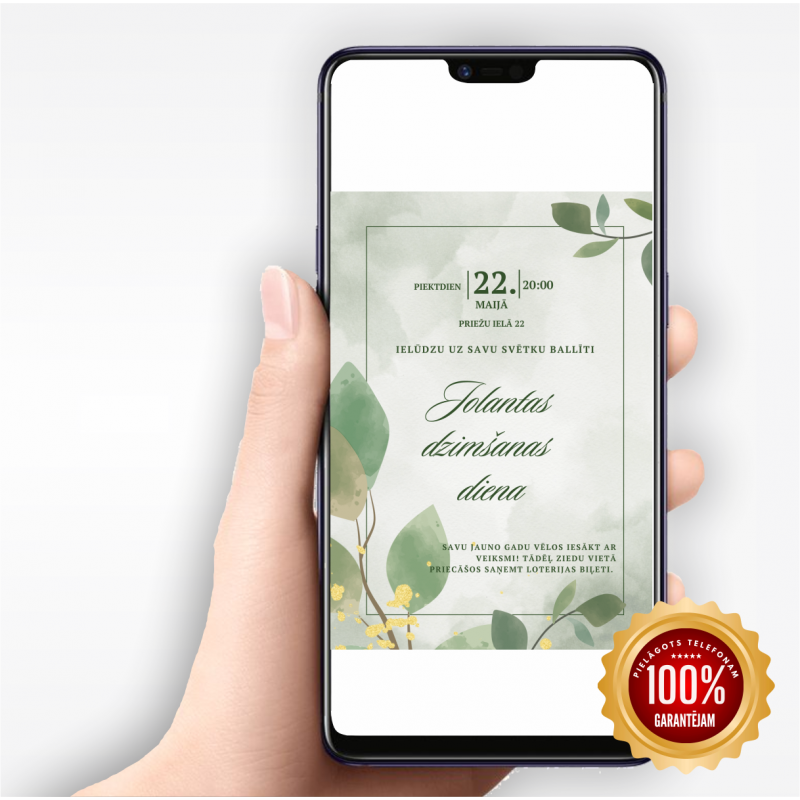 Ielūgumu vai veidni saņemsiet PNG formātā uz Jūsu norādīto e-pasta adresi.