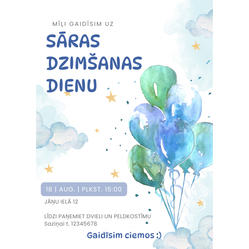 Ielūgums uz dzimšanas/vārda dienu vai jebkuriem citiem svētkiem!